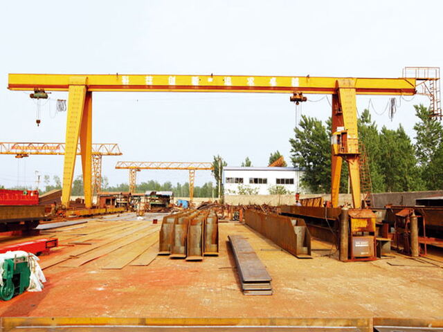 電動葫蘆門式起重機是有軌運行的中小型起重設備,主要由門架(主梁、支腿、下橫梁等)、起升機構、運行機構及電控部分組成,以電動葫蘆作為起升機構,工作時沿主梁工字鋼下翼緣運行。門架結構分箱形和桁架兩種,箱形工藝好,制作方便;桁架自重輕,抗風能力強。整機具有自重輕、結構簡單、安裝維修方便等特點,適用于中小起重量范圍內的廠礦、貨場及倉庫等室外場所作一般裝卸吊運工作。